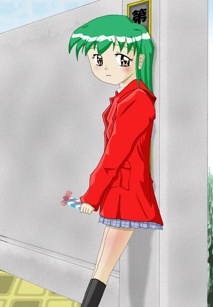 一応、説明しますと「校門であこがれの先輩を待つ女子高生」って